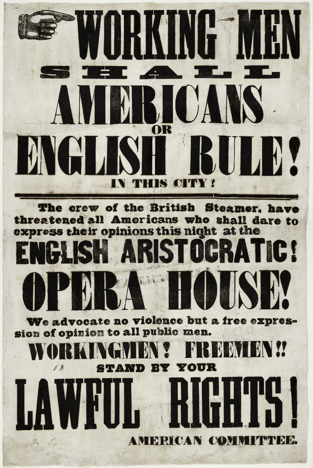 While Buntline was involved in American nativist movements writ-large, he is perhaps best known for the Astor Place Riot. At the center of the riot was a casting dispute. Producers at the Astor Place Opera House cast English actor William Macready to play Macbeth. Nativists wanted American Edwin Forrest. Ned Buntline produced and distributed the following handbill charged with inciting the riot.