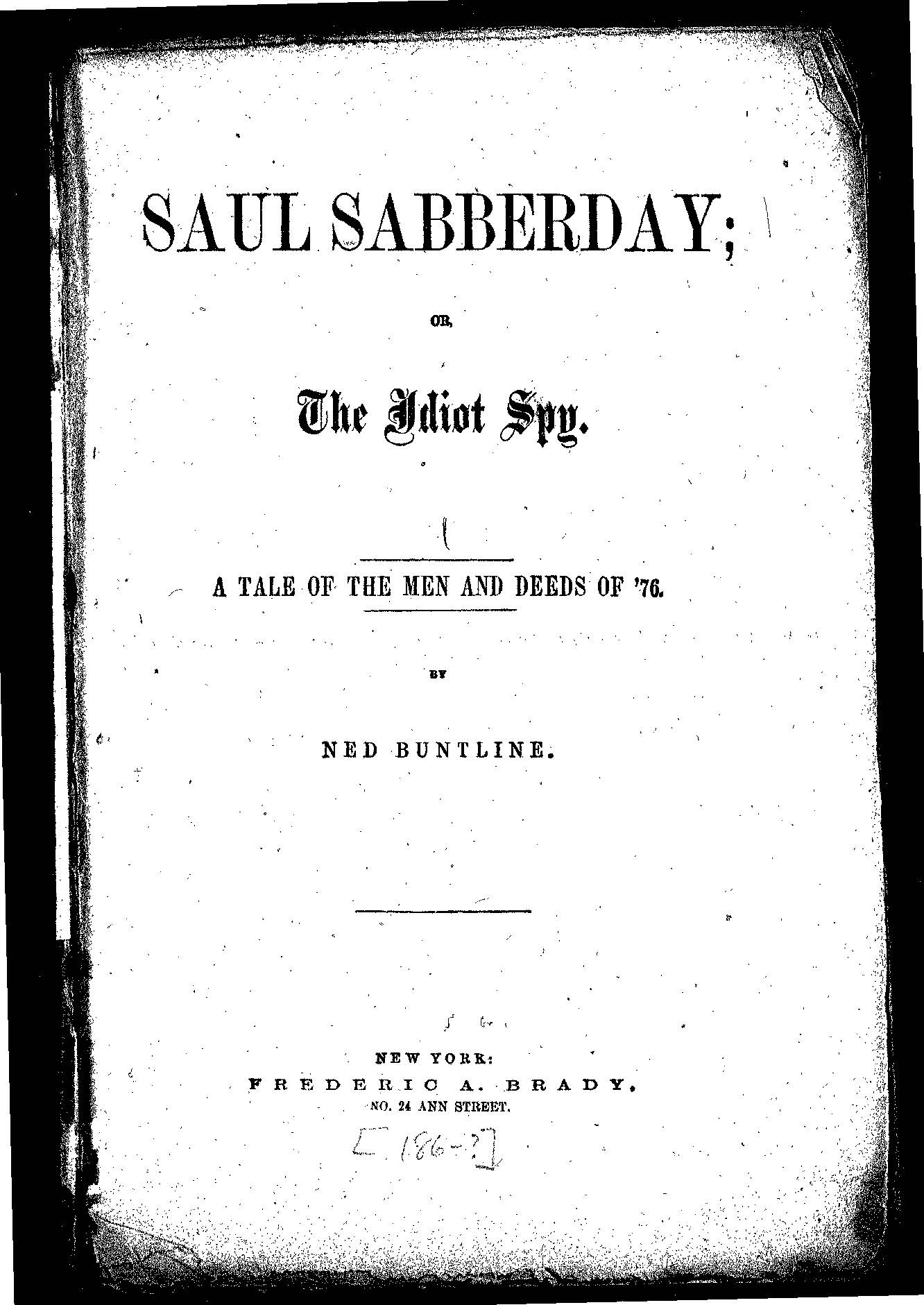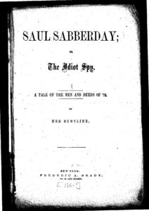In addition to being a rabble-rouser, political activist, and journal editor, Buntline was also a prolific writer of sensational fiction. He penned dozens of shilling shockers—later called dime novels—and popularized William Cody, aka “Buffalo Bill.” Today, I consider one of those novels, Saul Sabberday, or, the Idiot Spy (1858), which I situate in the context of archival research from the American Philosophical Society and Library Company of Philadelphia. Namely, I want to think about how Buntline coopts the myth of fighting Quakers to reformulate nativist ideology. That’s right, fighting Quakers. More on that shortly.