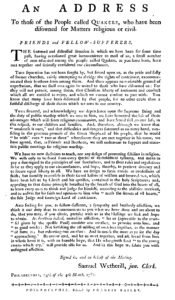 the breakaway sect abolished disownment for offenses related to military service, but otherwise maintained the Society’s “general doctrines, organization and mode of conduct in worship.” In fact, Wetherhill even penned a broadside in the Pennsylvania Gazette, which evangelizes Friends disowned for their involvement in the war.